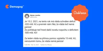„Je 15. 2. 2021, na tento rok má vláda schválen deficit −320 mld. Kč a premiér nám říká, že vláda teď nemá peníze! Že potřebuje teď hned další novelu rozpočtu s deficitem −500 mld. Kč! Za leden vláda na přímou pomoc vyplatila 15 mld. Kč, nerozumím tomu, že vláda nemá peníze!“