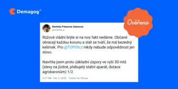 „Navrhla jsem proto základní úspory ve výši 30 mld. (slevy na jízdné, přebujelý státní aparát, dotace agrobaronům).“