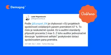 „Podle @Europarl_EN je chybovost v EU projektech společností ovládaných panem premiérem 67 %. To číslo je neskutečně vysoké. EU a auditní standardy připouští procenta dvě, max. pět. Z toho auditor jednoznačně dovozuje „systémové selhání“ poskytování dotací společnostem pana premiéra.“