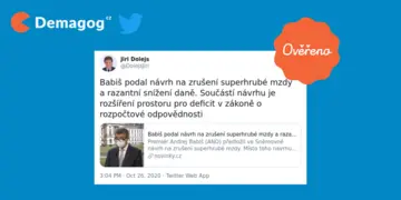 „Babiš podal návrh na zrušení superhrubé mzdy a razantní snížení daně. Součástí návrhu je rozšíření prostoru pro deficit v zákoně o rozpočtové odpovědnosti.“