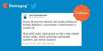 „Pouze 36 procent občanů věří podle průzkumu Andreji Babišovi v souvislosti s informacemi o covidu-19. To je příliš málo, když právě on řídí v této složité situaci vládu, která vyhlašuje nejrůznější opatření, jak nemoc zastavit.“