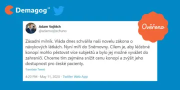 „Zásadní milník. Vláda dnes schválila naši novelu zákona o návykových látkách. Nyní míří do Sněmovny. Cílem je, aby léčebné konopí mohlo pěstovat více subjektů a bylo jej možné vyvážet do zahraničí. Chceme tím zejména snížit cenu konopí a zvýšit jeho dostupnost pro české pacienty.“