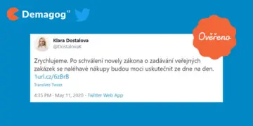 „Zrychlujeme. Po schválení novely zákona o zadávání veřejných zakázek se naléhavé nákupy budou moci uskutečnit ze dne na den. https://1url.cz/6zBrB“