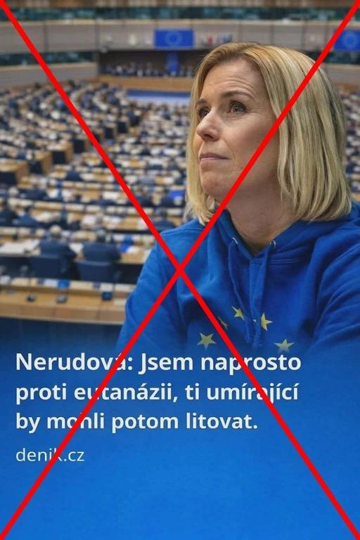- Řekla Danuše Nerudová, že je proti eutanázii, protože „by umírající potom mohli litovat“? Ne. Ve veřejně dostupných zdrojích se takové vyjádření Danuše Nerudové neobjevilo. Nerudová později sama uvedla, že je tento citát falešný. Grafika v příspěvku navíc tuto citaci nepravdivě spojuje s portálem deník.cz.