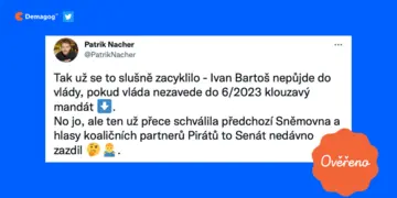 „Tak už se to slušně zacyklilo - Ivan Bartoš nepůjde do vlády, pokud vláda nezavede do 6/2023 klouzavý mandát ⬇️. No jo, ale ten už přece schválila předchozí Sněmovna a hlasy koaličních partnerů Pirátů to Senát nedávno zazdil 🤔🤷♂️.“